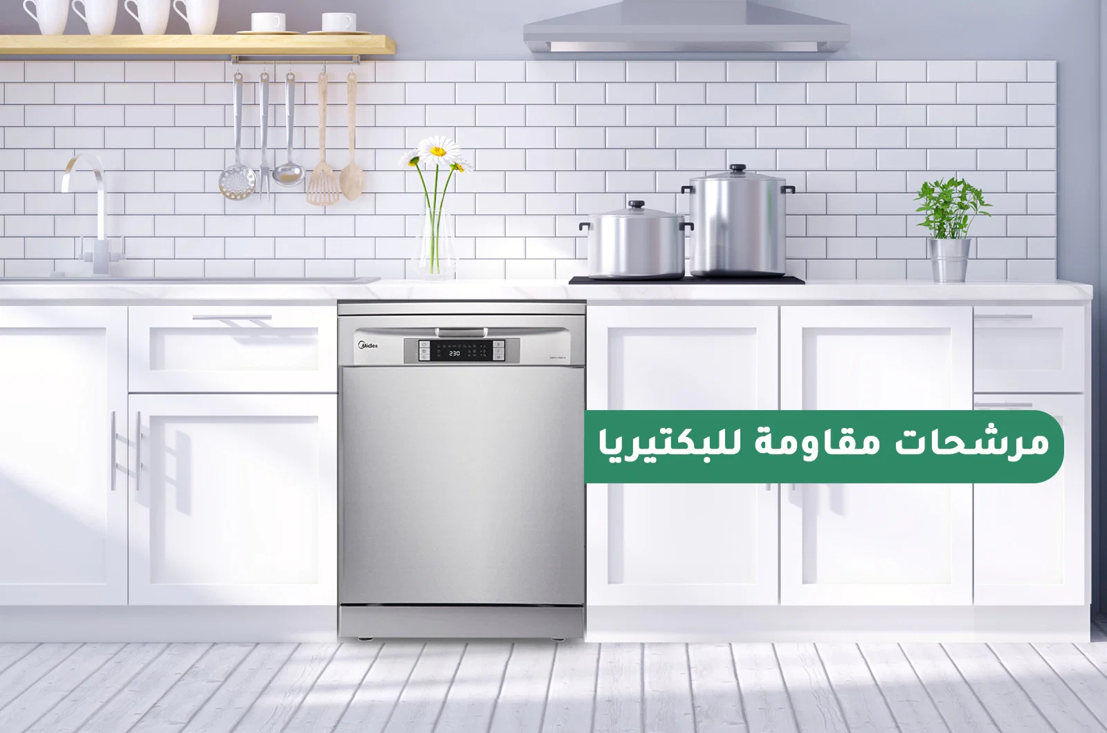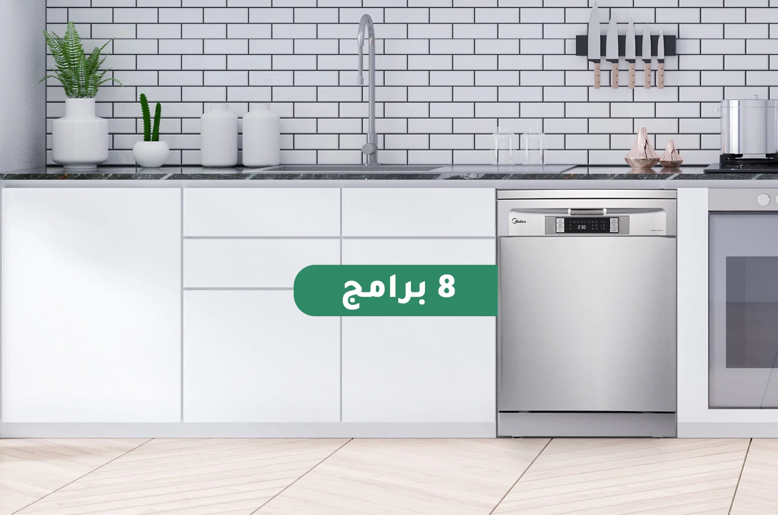 - Information about the Midea dishwasher, 8 programs, silver. The Midea dishwasher, silver, features an ideal anti-bacterial cleaning technology and superior cleaning ability, with a design that provides you with the least amount of energy consumption.